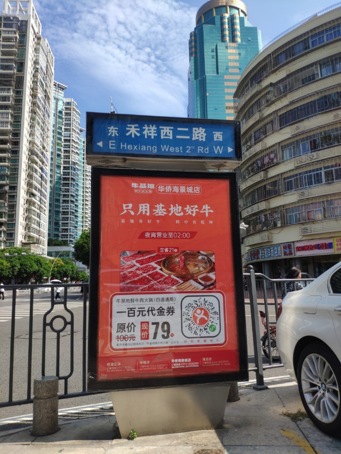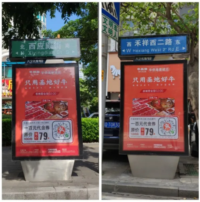 ?;嘏c天藝傳媒強(qiáng)強(qiáng)聯(lián)手,精準(zhǔn)宣傳將?;厝A僑海景城店附近的城市路名牌戶外媒體進(jìn)行定點(diǎn)宣傳。
