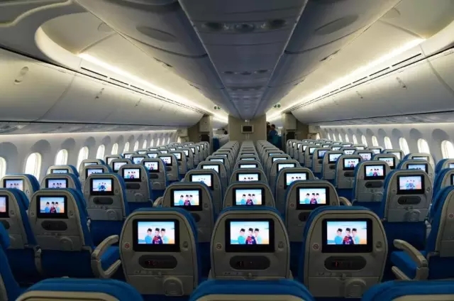 據介紹,B787-9可以搭載287名旅客,比B787-8的237個座位多出21%。在客艙布局方面取消了頭等艙的座位,改由30個商務艙和257個經濟艙組成。