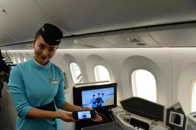 這架B787-9型飛機在客艙內可實現空地互聯(lián),旅客在飛機進入平飛狀態(tài)后,可利用電腦、iPad等設備連接客艙內Wi-Fi信號,體驗收發(fā)郵件、購物、微信等網絡服務。