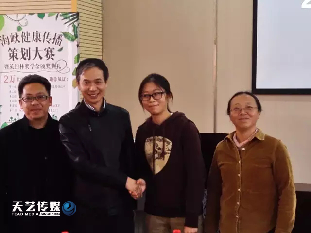 典禮由廈大新聞傳播學院團委書記戴瑩先生主持,作《廈門大學新聞傳播學院2016學年獎學金評審工作報告》并宣讀有關(guān)獎學金的獲獎名單,天藝傳媒董事長林少敏先生為獲獎學生頒獎。